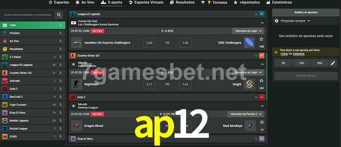 A aposta ap12 oferece aos jogadores a experiência mais conveniente de apostas em eSports!